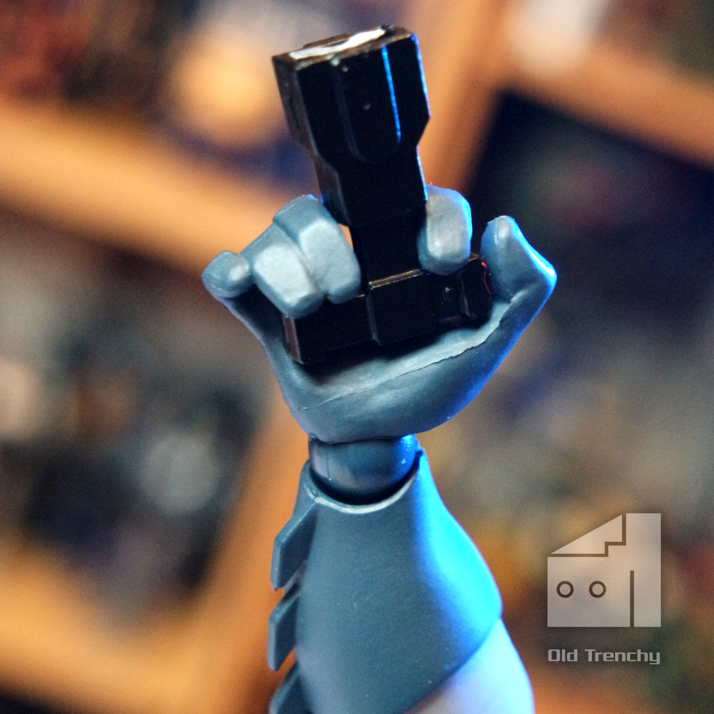 As I said in my unboxing post, I’m still handling him rather gingerly but the joints are sturdy and smooth. In particular I’m liking the ratcheting wrist joints as they, which I don’t see too often. I’m also liking how they engineered the double elbow joint to also include a pivot instead of having an unsightly seam further up the arm.