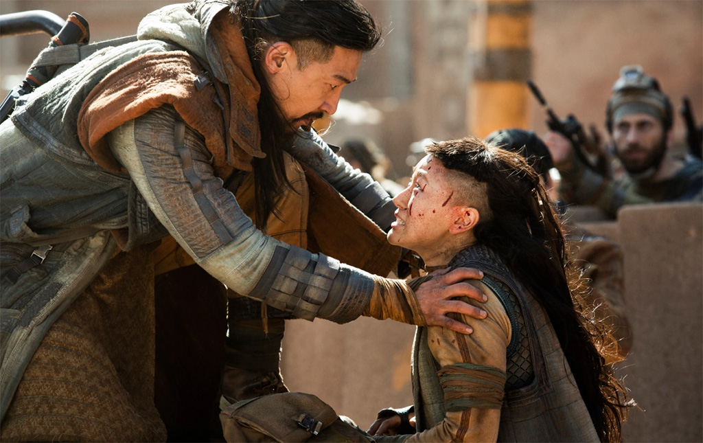 There is also an important and dramatic moment toward the end of the first episode where Chief takes his bucket off for the first time in the show to get Kwan on side. It’s actually a good moment but is undermined by him not putting it back on when they are in danger again as well as the problematic optics of this tiny little Asian girl only trusting this hulking super soldier because he looks “normal” or “white passing”.